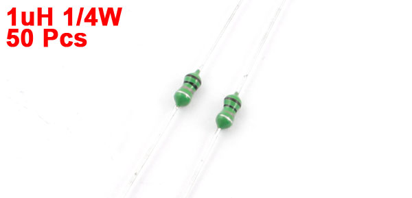 Product Name Color Ring Inductor Inductance Tolerance ±10%(K) Inductance 1uH Power 1/4W Material Epoxy Resin, Metal, Inductor Body Size 3mm x 7mm / 0.12" x 0.28"(Max.D*L) Lead Diameter 0.4mm Total Length 6cm / 2.4" Net Weight 9g Package Content 50(±2%) x Color Ring Inductor - Reviews