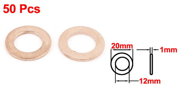 Product Name Copper Washer Total Size 12 x 20 x 1mm/0.5" x 0.8" x 0.04"(Inner Dia*OD*T) Material Copper Color Copper Tone Net Weight 75g Package Content 50(+/-2%) x Copper Washers - Reviews