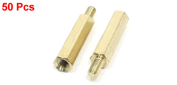 Product Name Standoff Hexagonal Spacer Thread Size M3 Male to Female Male Thread Length 6mm/0.24" Body Length 20mm/0.8" Overall Size(Approx) 26 x 5mm /1.1" x 0.2" (L*Max.D) Material Brass Color Gold Tone Net Weight 125g Package Content 50Pcs(±2%) x Standoff Hexagonal Spacer - Reviews