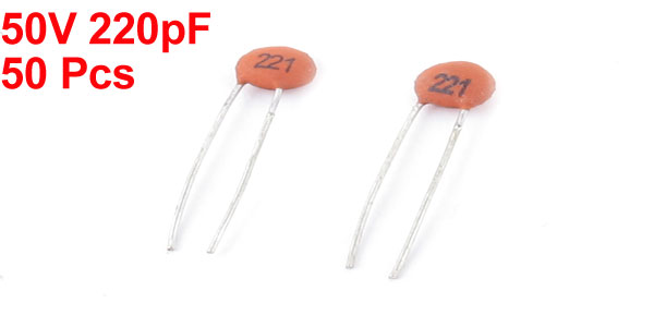 50pcs 220pF 50V 10% Tolerance Radial Lead Through Hole Ceramic Disc Capacitor