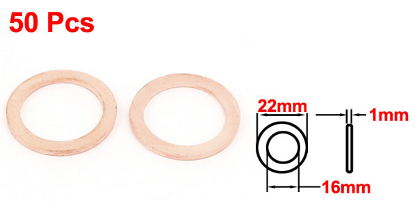 50PCS 22mm OD 16mm ID 1mm Thick Copper Washer Flat Ring Oil Brake Line Seal