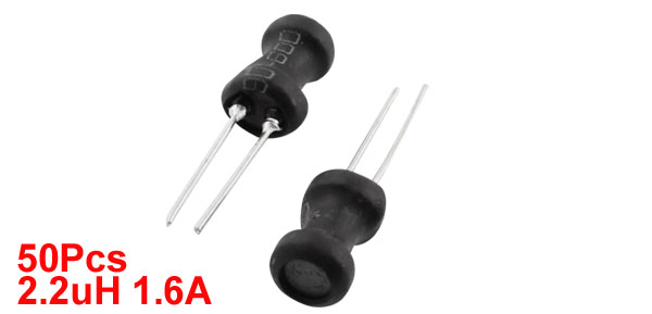 Product Name Radial Lead Inductor Inductance 2.2uH Rating Current 1.6A Tolerance 10% Body Size 6 x 10mm / 0.24" x 0.39"(D*H) Lead Distance 3mm / 0.12" Color Black, Silver Tone Weight 47g Package Content 50(±2%) x Radial Lead Inductor - Reviews