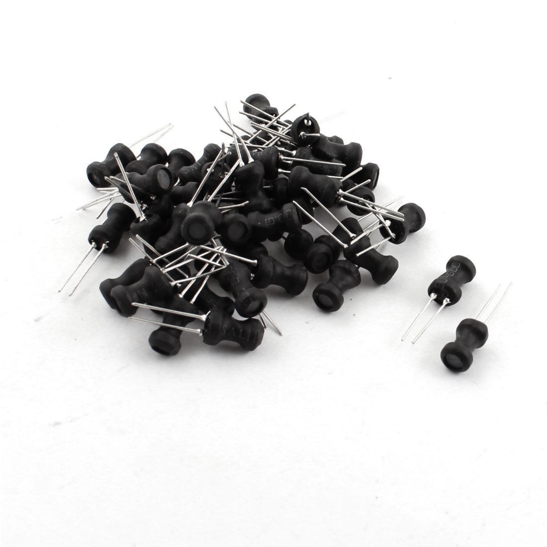 50Pcs 2.2uH 1.6A 6x10mm 10% Tolerance Shielded Radial Lead Inductor Black