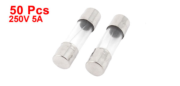 Product Name Glass Tube Fuses Quantity 50±2% Pcs Features Low Breaking Capacity(L) Rated Voltage 250V Rated Current 5A Dimension 5 x 20mm/ 0.2" x 0.8" (D*L) Material Glass Color Clear, Silver Tone Weight 33g Package Content 50 x Glass Tube Fuses - Reviews