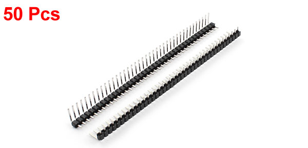 Product Name Pin Header Position 40 Row Single Row Mounting Angle 90 Degree Pin Pitch 2.54mm Total Length 100mm/4" Material Plastic, Metal Color Black, Silver Tone Weight 122g Package Content 50 Pcs(±2%) x Pin Headers - Reviews