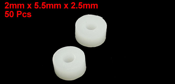 Product Name Spacer Gasket Sleeve Fit for for RC Toy Model Total Size 2 x 5.5x2.5mm/0.08" x 0.22" x 0.1"(Inner Dia*Outer Dia*Height) Material Plastic Color White Net Weight 4g Total Weight 4g Package Content 50(±2%) Pcs x Spacer Gasket Sleeve - Reviews