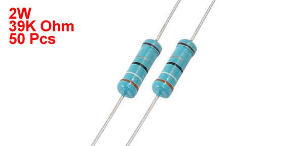 Product Name Metal Film Resistors Power Rating 2W Resistance 39K Ohm Tolerance ±1% Total Length(Approx.) 7cm /2.8" Body Size 4 x 15mm/0.16" x 0.6"(D*L) Color As Picture Show Weight 43g Package Content 50(± 2%) x Metal Film Resistors - Reviews