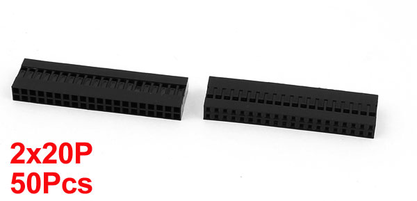 Product Name Jumper Wire Female Pin Connector Type 2 x 20P Pitch 2.54mm Size(Approx.) 51 x 14 x 5mm/2" x 0.55" x 0.2"(L*W*T) Color Black Metarial Plastic Net Weight 102g Package Content 50(+/-2%) x Jumper Wire Female Pin Connectors - Reviews