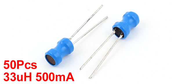 Product Name Radial Lead Inductor Inductance 33uH Rating Current 500mA Tolerance 10% Body Size 4 x 6mm / 0.16" x 0.24"(D*H) Pin Length 19mm/ 0.75" Lead Distance 2mm / 0.08" Color Blue, Silver Tone Weight 14g Package Content 50(±2%) x Radial Lead Inductor - Reviews