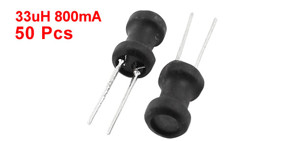 Product Name Radial Inductor Inductance 33uH Rating Current 800mA Tolerance 10% Body Size 6 x 10mm / 0.24" x 0.4"(D*H) Pin Size 0.6 x 16mm/ 0.24" x 0.63"(D*L) Lead Distance 2mm / 0.08" Color Black, Silver Tone Weight 55g Package Content 50Pcs(±2%) x Radial Inductor - Reviews