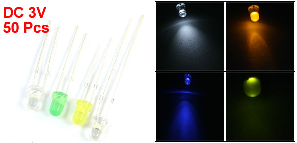50Pcs 3mm Round Head Brightlight Multicolored LED Lamp Bulbs Emitting Diodes