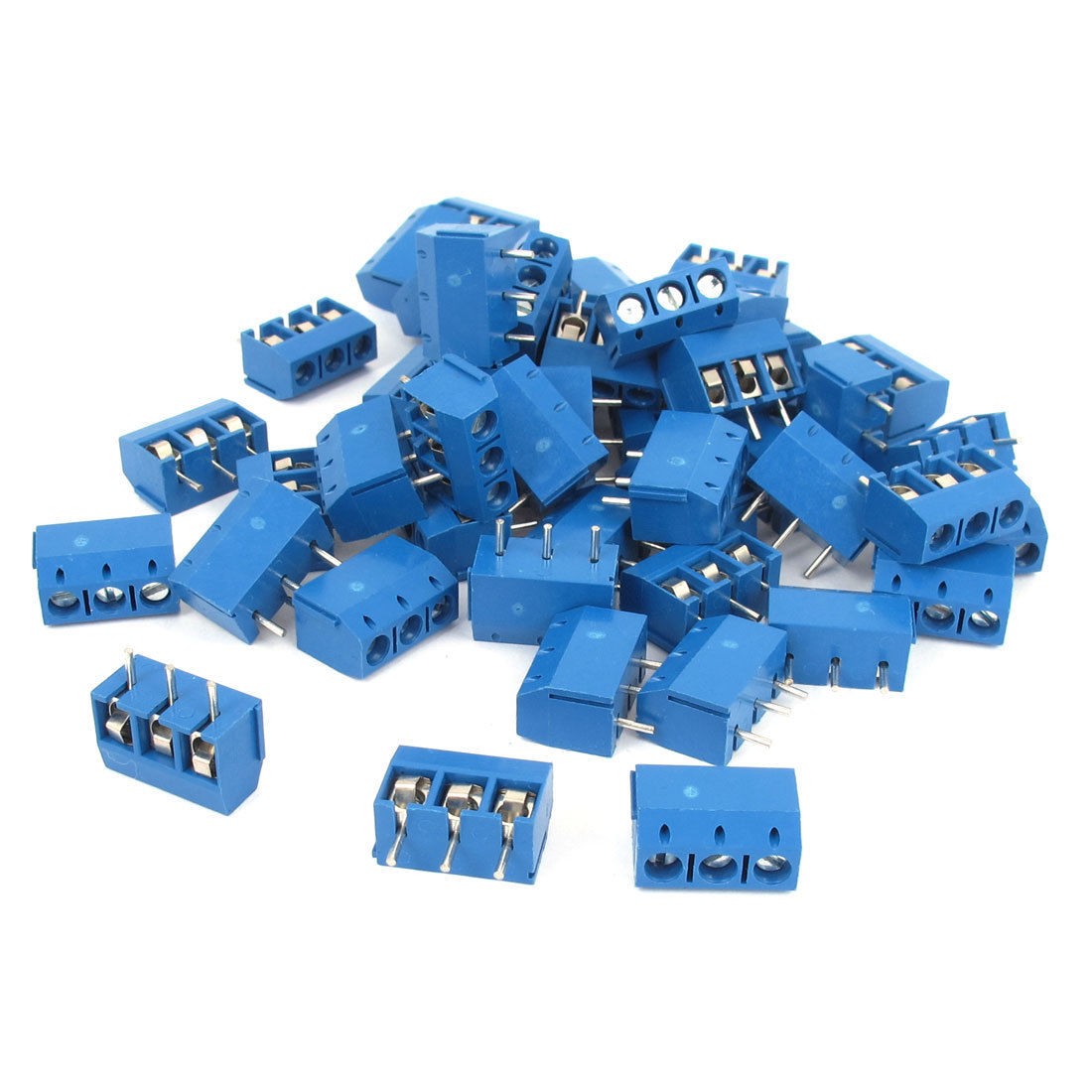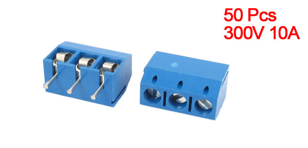 Product Name PCB Terminal Block Material Plastic Rated Value 300V 10A Poles 3P Pin Distance 4.5mm/0.18" Total Size 15 x 7.8 x 14mm/0.6" x 0.3" x 0.6" (L*W*H) Color Blue,Silver Tone Weight 120g Package Content 50 x 3P PCB Terminal Block - Reviews