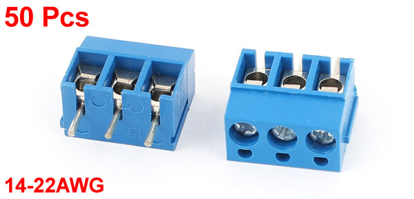 50Pcs 3Way 3Pin PCB Screw Terminal Block Connector 5mm Pitch for 14-22AWG Wire
