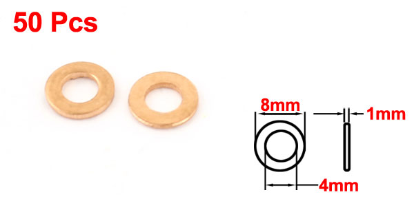 50pcs 4mm Inner Dia Copper Flat Washer Ring Line Seal Fitting Fasteners