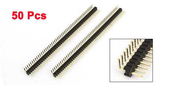 Product Name Pin Header Pin Count 50 Type Single Row Mounting Angle 90° Pin Pitch 1.27mm Total Size 63 x 7 x 5mm/ 2.5" x 0.28" x 0.2"L*W*H) Material Plastic, Metal Color Black, Gold Tone Weight 99g Package Content 50 x Pin Header - Reviews
