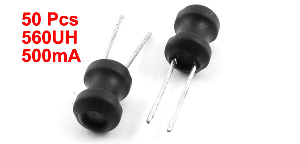 Product Name Magnetic Core Inductor Material UL-polyolefin, Metal Inductance 560UH Current 500mA Tolerance 10% Body Size 6 x 8mm / 0.24" x 0.31"(D*H) Pin Length 13mm/ 0.51" Lead Distance 3mm / 0.12" Color Black, Silver Tone Net Weight 41g Package Content 50(±2%) x Magnetic Core Inductors - Reviews
