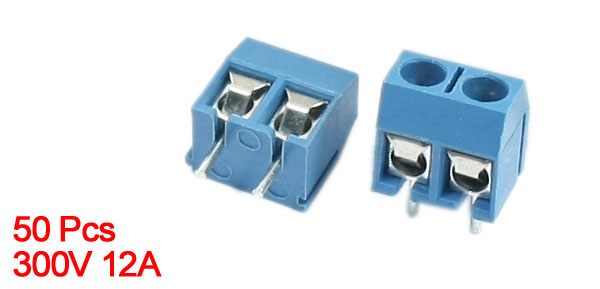 Product Name Screw Terminal Block Power 300V 12A Poles 2 Position Pin Number 2 Pin Pitch 5mm / 0.2" for Wire Size 14-22AWG Total Size 12 x 10 x 9mm /0.47" x 0.4" x 0.35" (L*W*H) Color Blue, Silver Tone Material Plastic Weight 80g Package Content 50Pcs x Screw Terminal Block - Reviews