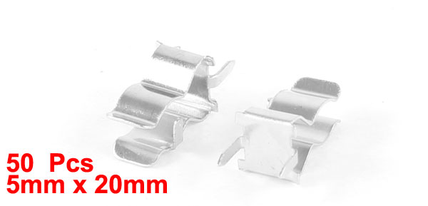 Product Name Fuse Clip Fit Fuse Body Size 20 x 5mm/ 0.7" x 0.1" (L*D) Clip Body Size 12 x 5mm/ 0.4" x 0.1"(L*W) Pin Pitch 5mm / 0.2" Fit Fuse Dia 5mm Function Fast Blow Color Silver Tone Material Alloy Weight 16g Package 50(+/-2%) x Fuse Clips