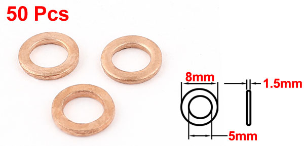 50pcs 5mmx8mmx1.5mm Copper Flat Washer Ring Seal Fitting Fastener