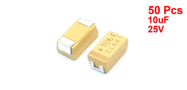 Product Name Chip Tantalum Capacitor Rated Voltage 25V Capacity 10uF Type 6032 C Type Each Size(Approx.) 6 x 3.2 x 2.6mm/ 0.24" x 0.13" x 0.1"(L*W*T) External Material Tantalum, Metal Weight 8g Package Content 50 Pcs x Chip Tantalum Capacitor - Reviews