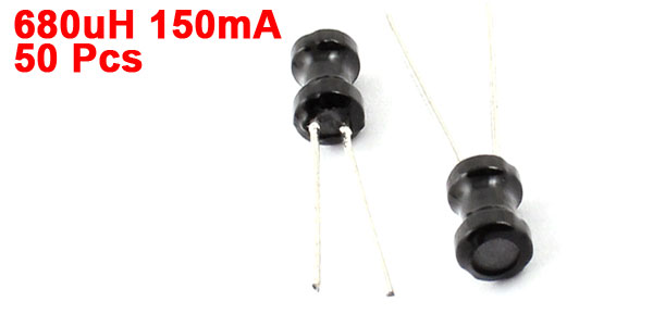 Product Name Radial Lead Inductor Inductance 680uH Rating Current 150mA Tolerance 10% Body Size 4 x 6mm / 0.16" x 0.24"(D*H) Lead Distance 2mm / 0.08" Color Black, Silver Tone Weight 16g Package Content 50 x Radial Lead Inductor - Reviews