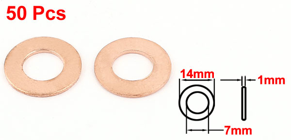 50pcs 7mmx14mmx1mm Copper Flat Washer Ring Oil Brake Line Seal Fitting Fasteners