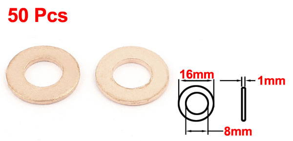 50pcs 8mmx16mmx1mm Copper Flat Washer Ring Oil Brake Line Seal Fasteners Gaskets