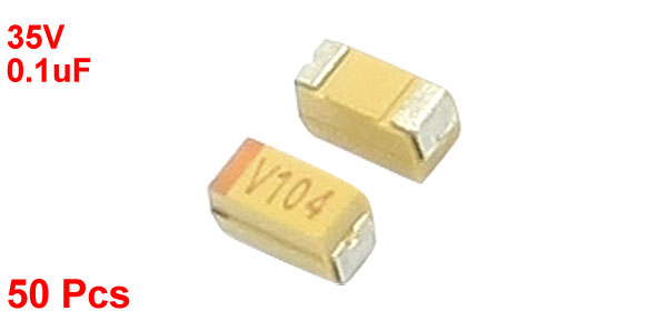 Product Name Chip Tantalum Capacitor Rated Voltage 35V Capacity 0.1uF Type 3216 A Type Each Size(Approx.) 3.5 x 2 x 2mm/ 0.14" x 0.08" x 0.08"(L*W*T) External Material Tantalum, Metal Weight 3g Package Content 50 Pcs(±2%) x 3216 Chip Tantalum Capacitor - Reviews