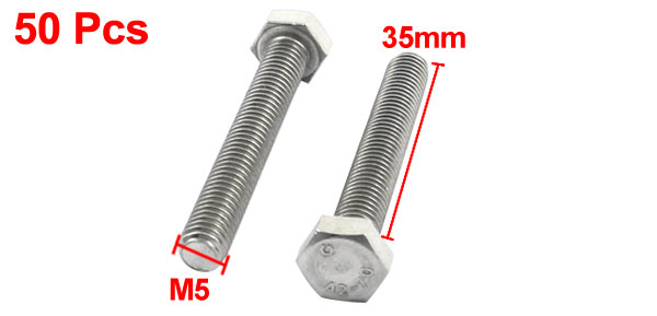 50Pcs A2-70 Stainless Steel Hex Hexgon Cap Srews 5mm x 35mm