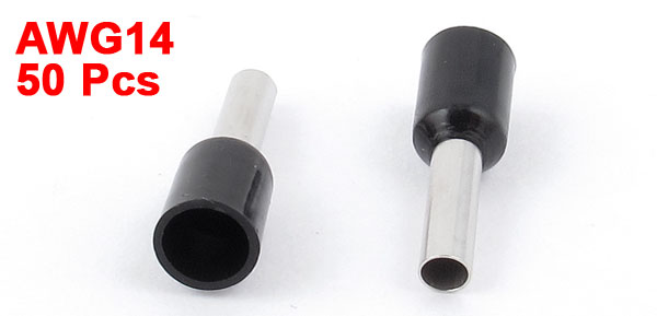 50pcs AWG14 Wire Copper Crimp Connector Insulated Ferrule Cord Terminal Black