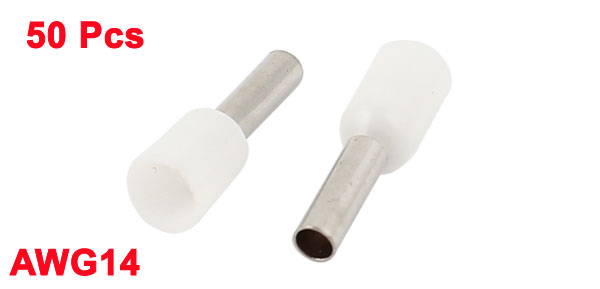 50pcs AWG14 Wire Copper Crimp Connector Insulated Ferrule Cord Terminal White
