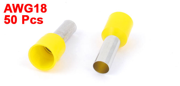 50pcs AWG18 Wire Copper Crimp Connector Insulated Ferrule Cord Terminal Yellow