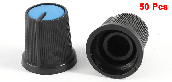 50Pcs Blue Black Plastic 6mm Shaft Insert Dia. Electrical Rotary Knobs