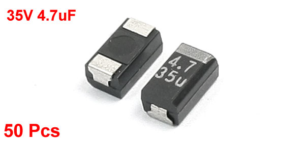 Product Name Chip Tantalum Capacitor Rated Voltage 35V Capacity 4.7uF Type 6032 C Type Each Size(Approx.) 6 x 3.2 x 2.6mm/ 0.24" x 0.13" x 0.1"(L*W*T) External Material Tantalum, Metal Weight 8g Package Content 50 Pcs(±2%) x Chip Tantalum Capacitor - Reviews