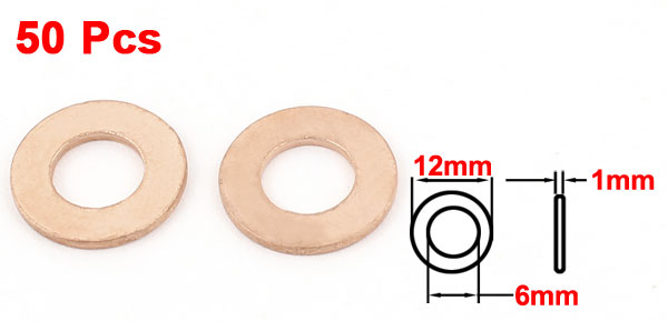 50Pcs Copper Crush Washer Flat Ring Gasket Fitting 6mmx12mmx1mm