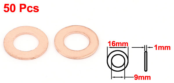 50Pcs Copper Crush Washer Flat Ring Gasket Fitting 9mmx16mmx1mm