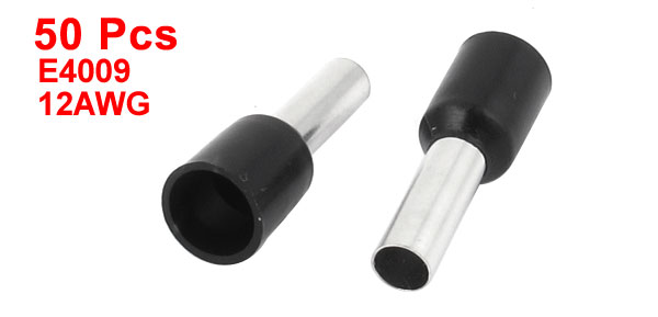 50Pcs E4009 12AWG Insulated Ferrule Wire Cord End Terminal Connector Black