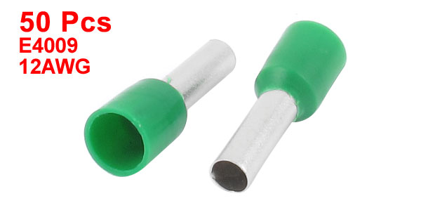 Product Name Insulated Terminal Model E4009 Design Tube Type Fit Cable Size 4mm2 12AWG Material Plastic, Metal Color Silver Tone, Green Net Weight 10g Package Content 50 Pcs (+/-2%) x Insulated Terminal - Reviews