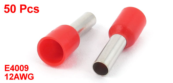 50Pcs E4009 12AWG Insulated Ferrule Wire Cord End Terminal Crimp Connector Red