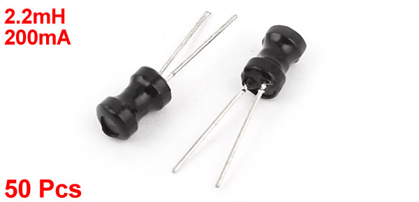 Product Name Inductor Inductance 2.2mH Rating Current 200mA Tolerance 10% Body Size 4 x 6mm / 0.16" x 0.24"(D*H) Pin Size 0.03 x 12mm/ 0.01" x 0.47"(D*L) Lead Distance 1.5mm / 0.06" Color Black, Silver Tone Weight 18g Package Content 50Pcs(+/-2%) x Inductors - Reviews