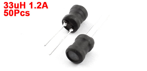 Product Name Radial Lead Inductor Inductance 33uH Rating Current 1.2A Tolerance 10% Body Size 6 x 8mm / 0.24" x 0.31"(D*H) Pin Length 15mm/ 0.6" Lead Distance 3mm / 0.12" Color Black, Silver Tone Weight 50g Package Content 50(±2%) x Radial Lead Inductor - Reviews