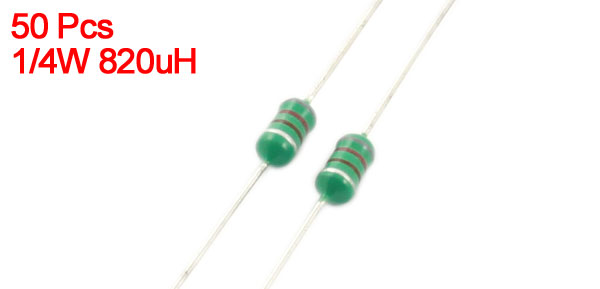 Product Name Color Ring Inductor Inductance Tolerance ±10%(K) Inductance 820uH Power 1/4W Material Epoxy Resin, Metal, Inductor Body Size 3mm x 7mm / 0.12" x 0.27"(Max.D*L) Lead Diameter 0.4mm / 0.016" Total Length 6cm / 2.4" Weight 10g Package Content 50(±2%) x Color Ring Inductor  - Reviews