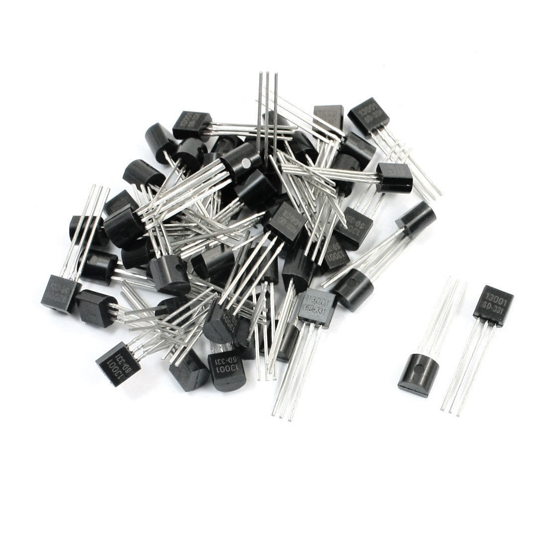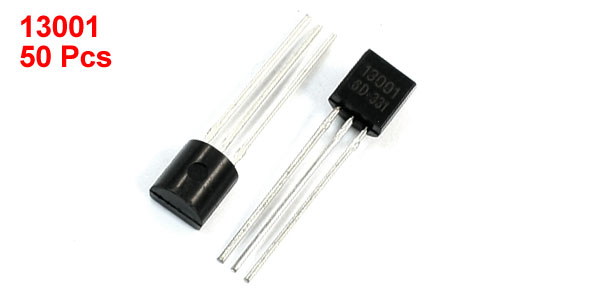 Product Name NPN Transistor Model 13001 Package TO-92 Collector Base Voltage 600V Collector Current 0.2A Body Dimension 4.3 x 4.3 x 3mm/ 0.16" x 0.16" x 0.12" (L*W*T) Weight 7g Package Content 50Pcs(±2%) x NPN Transistor - Reviews