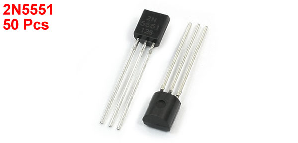 Product Name NPN Transistor Model 2N5551 Package TO-92 Collector Base Voltage 160V Collector Current 600mA Body Dimension 4.3 x 4.3 x 3mm/ 0.16" x 0.16" x 0.12" (L*W*T) Weight 7g Package Content 50Pcs(±2%) x NPN Transistor - Reviews