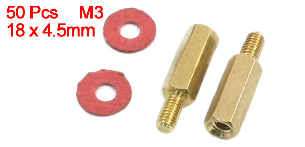 Product Name Standoff Hexagonal Spacer Thread Size M3 Male x M3 Female Male Thread Length 6mm/ 0.24" Body Length 12mm/ 0.47" Total Size(Approx.) 18 x 4.5mm/ 0.71" x 0.06" (L*Max.D) Material Brass Color Gold Tone Net Weight 81g Package Content 50(±2%) x Standoff Hexagonal Spacer