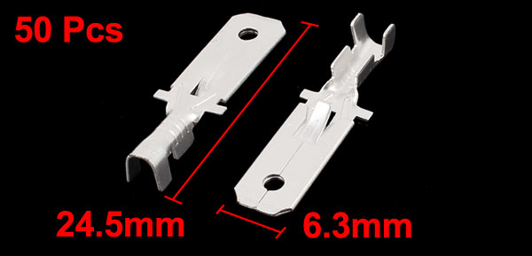Product Name 6.3mm Male Spade Terminal Male Spade Terminal Width 6.3mm/0.0.25" for Wire Range 0.2-0.6mm2 Total Size 24.5 x 8 x 4mm / 0.96" x 0.31" x 0.16"(L*W*H) Material Metal Color Silver Tone Net Weight 34g Package Content 50 Pcs(+/- 2%) x 6.3mm Male Spade Terminal - Reviews