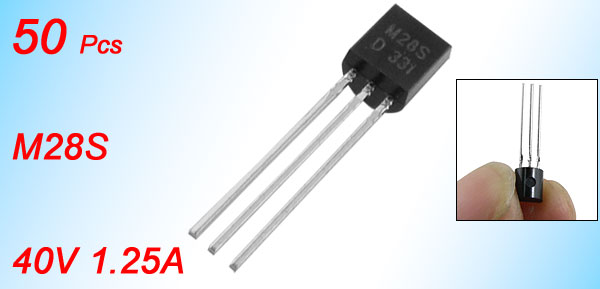 Product Name NPN Silicon Transistor Quantity 50±2% Pcs Model M28S Package TO-92 Collector Base Voltage 40V Collector Current 1.25A Collector Dissipation 850mW Pin Size 14 x 1mm/ 0.55" x 0.039" ( L* Pitch) Body Dimension 18 x 4 x 3mm/ 0.7" x 0.16" x 0.12" (L*W*T) Weight 10g Package Content 50 x Silicon NPN Transistor - Reviews