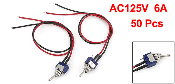 Product Name Motorcycle Toggle Switch Material Metal, Plastic Type SPDT (ON/ON) Thead Dia(Approx) 0.57cm / 0.22" Pins Number 3 Body Size 13 x 8 x 10mm/0.5" x0.31" x 0.4" Wire Length 28cm/ 11" Power AC125V, 6A Total Height 3.2cm / 1.3" Color Blue, Silver Tone Weight 425g Package Content 50 Pcs(±2%) x Motorcycle Toggle Switch - Reviews