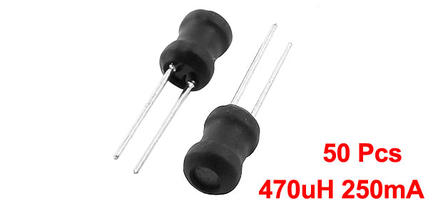 Product Name Radial Lead Inductor Inductance 470uH Rating Current 250mA Tolerance 10% Body Size 5 x 7mm / 0.2" x 0.27"(D*H) Pin Length 15mm/ 0.6" Lead Distance 2.5mm / 0.1" Color Black, Silver Tone Weight 32g Package Content 50(±2%) x Radial Lead Inductor - Reviews