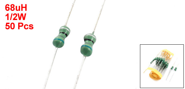 50Pcs PCB Welding 1/2W 68uH 10% Axial Color Ring Inductors 0410 4x10mm
